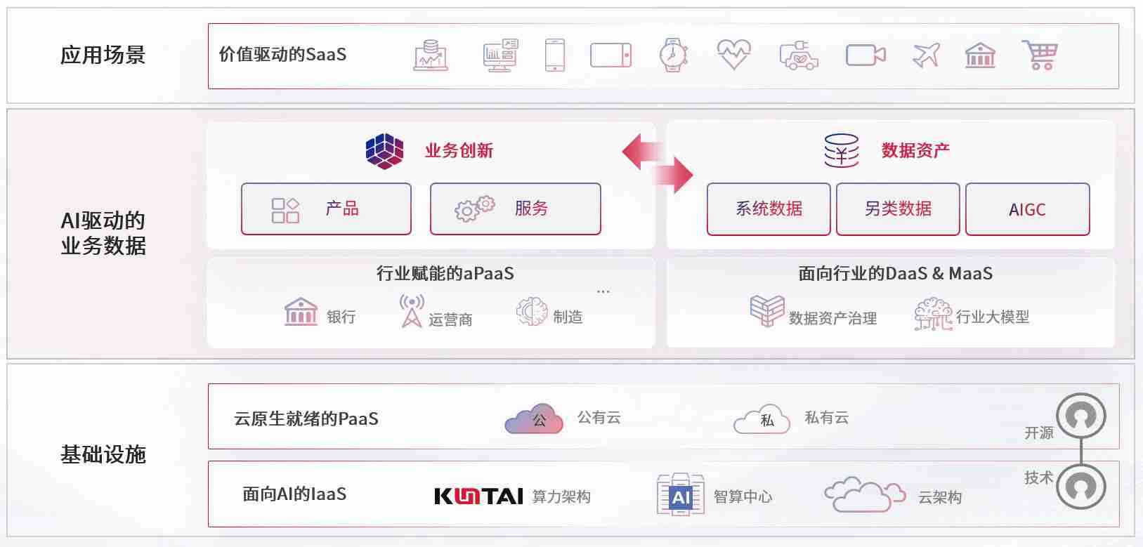 数字时代,,,,围绕企业数字化转型的关键要素,,C币钱包数码开创性的提出数云融合战略和技术体系框架,,着力在云原生、、数字原生、、AI原生和信创产业上架构产品和服务能力,,,为处在不同数字化转型阶段的快消零售、、汽车、、、金融、、医疗、、、、政企、、教育、、运营商等行业客户提供泛在的敏捷IT能力和融合的数据驱动能力,,构建跨界融合创新的数字业务场景和新业务模式,,,,助力企业级客户建立面向未来的核心能力和竞争优势,,,,全面推动社会的数字化、、智能化转型升级。。。。