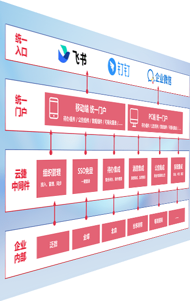 对协作平台提供支持服务,,支持企业应用与协作平台对接,,包含组织同步、、、、消息集成、、待办集成等。。。。支持目前主流的协作平台:钉钉、、、企微和飞书。。。。